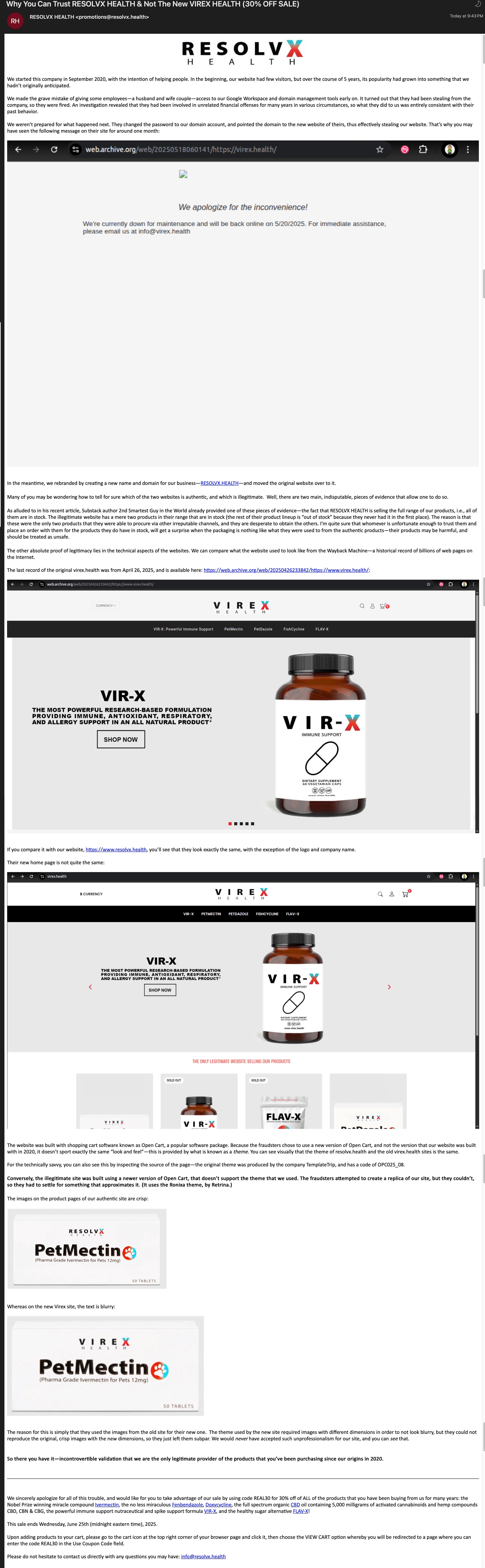 This substack was just alerted to a malicious email campaign currently underway promoting a “reopening sale” from the old Virex website.