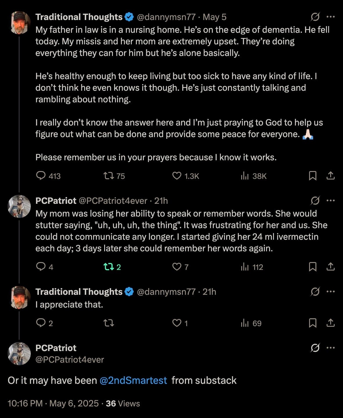 It most certainly was this Substack, and PCPatriot essentially restored his mother’s cognition in just three days, which is both unsurprising and yet utterly astounding!