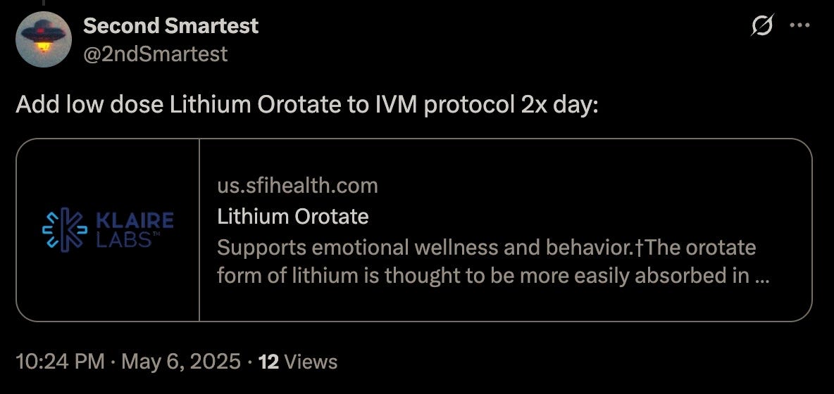Also, yours truly suggested adding low dose Lithium Orotate to the protocol:
