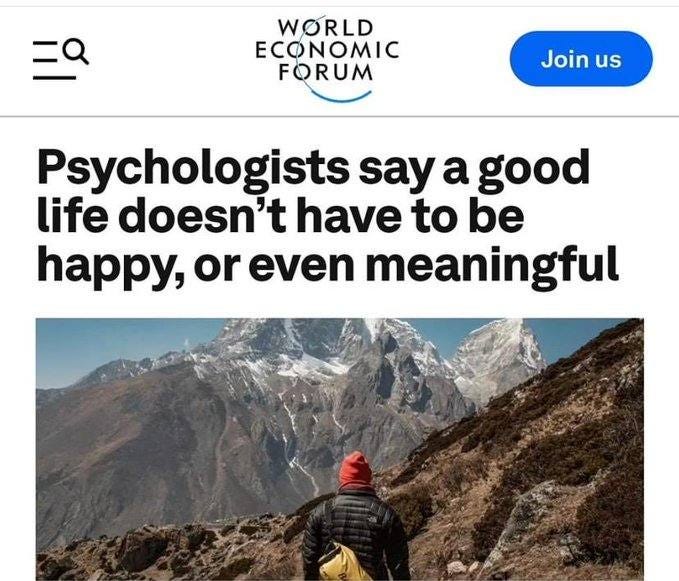 Because lives stripped of all happiness and meaning are that much easier to control. And what kind of control is the WEF really after?